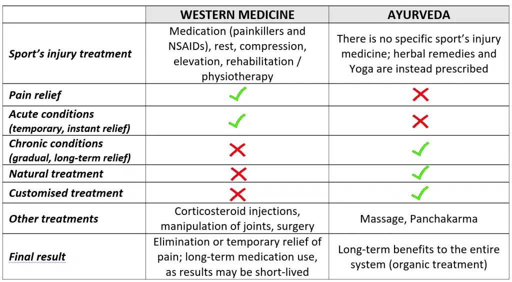 Ayurveda is a great holistic option when it comes to long-term symptoms of a sport’s injury that has not fully healed. It will help heal the affected area over time, regrow the bone, strengthen the muscles, and gradually bring you on the path to full recovery.