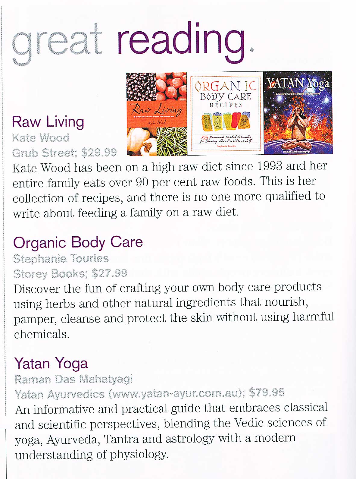 This glossy, colourful tome is the culmination of 38 years of yoga practice and a lifetime of Ayurvedic healing by the esteemed Mahatyagi (great yogi) Raman Das. Based in Sydney since 2000, Raman Das has a loyal following and receives rave reviews from his regular clientele. The capitalised title YATAN stands for Yoga, Ayurveda, Tantra, Astrology and Natural Therapies. By utilising all the wisdom of these different specialty areas, the author expounds a completely holistic lifestyle.