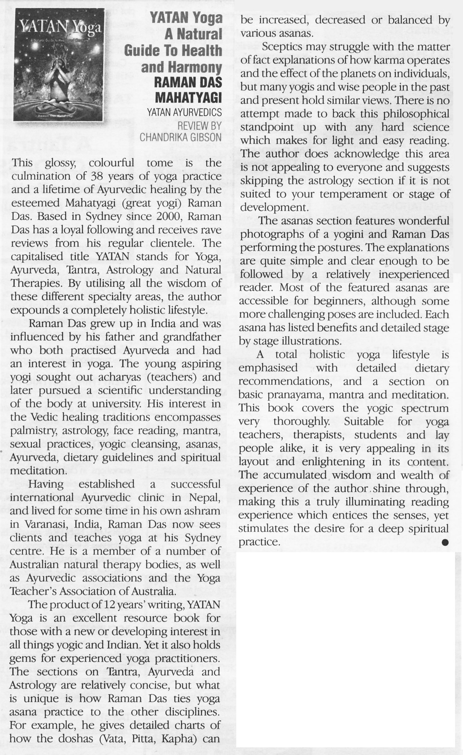 - Raman Das Mahatyagi draws on his vast knowledge base and many years of experience as an Ayurvedic physician, Tantric and Yoga practitioner to introduce to you the essence of YATAN Yoga. This book aims to assist you in maintaining sustained health, balance and harmony.