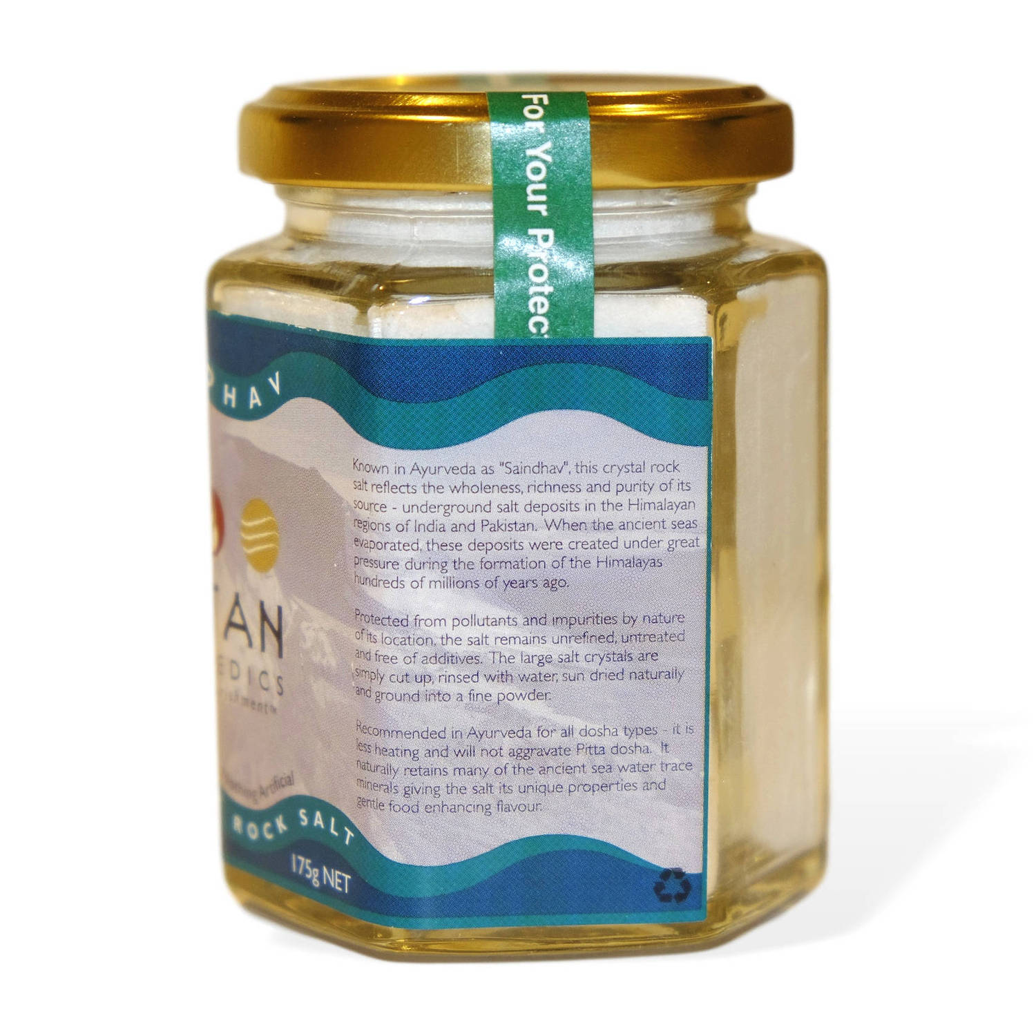 Known in Ayurveda as “Saindhav”, this crystal rock salt reflects the wholeness, richness and purity of its source – underground salt deposits in the Himalayan regions of India. When the ancient seas evaporated, these deposits were created under great pressure during the formation of the Himalayas hundreds of millions of years ago. Protected from pollutants and impurities by nature of its location, the salt remains unrefined, untreated and free of additives. The large salt crystals are simply cut up, rinsed with water, sun dried naturally and ground into a fine powder.