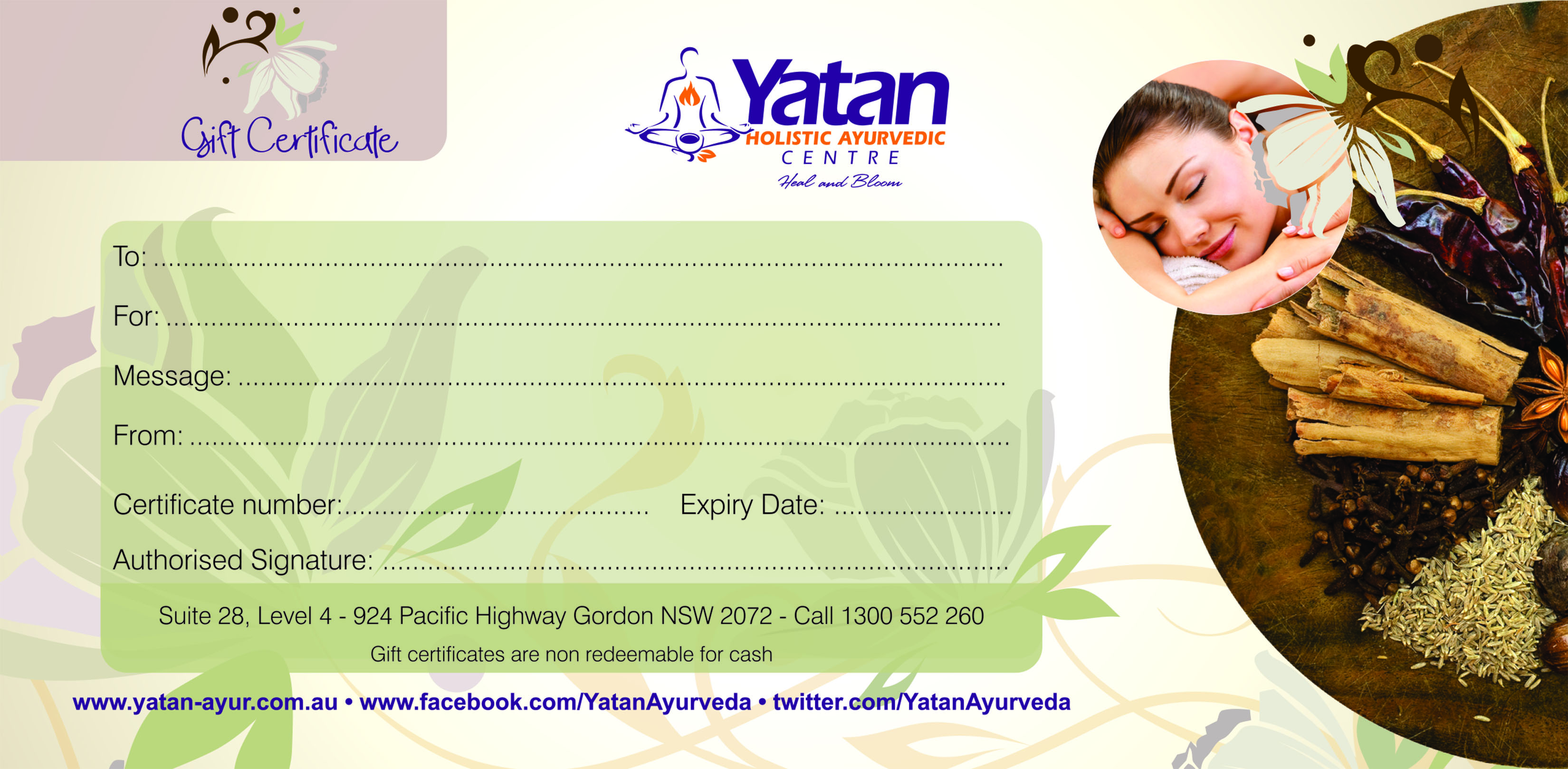 A Gift Certificate for a 50 minute Shirodhara treatment will be posted to you or a friend.